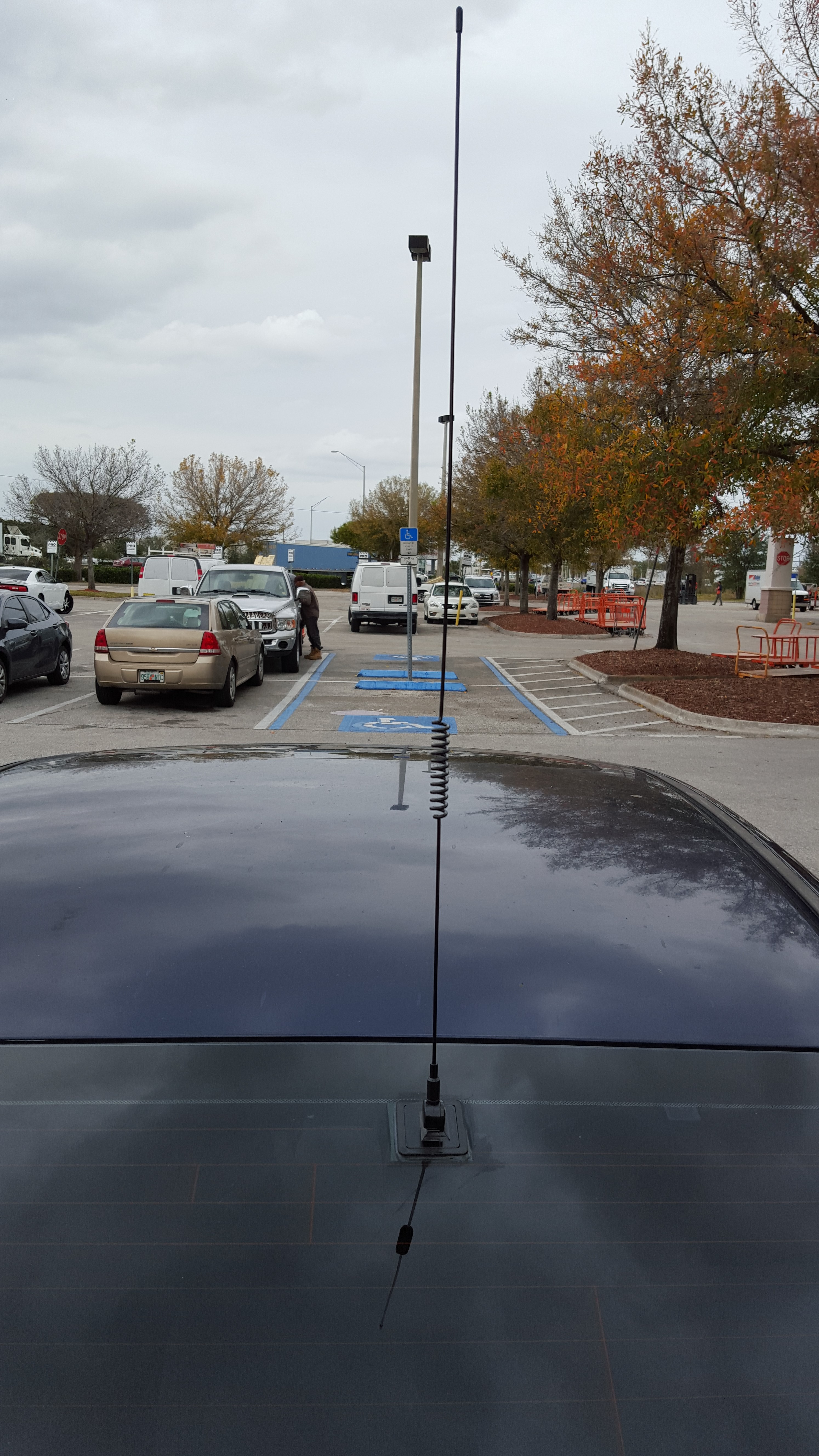 My next mission was the antenna and this was the tricky part. I refuse to put an antenna on my trunk (lip mount or magnet) because I use my trunk far too often to make that feasible. An alternative location was a magnet mount on top of the car (and for RF purposes the best location as the vehicles body would act as a ground plane), but alas I was unable to get this solution since the coax cable was too thick to ‘hide in my rear windshield grooves’ to my trunk.