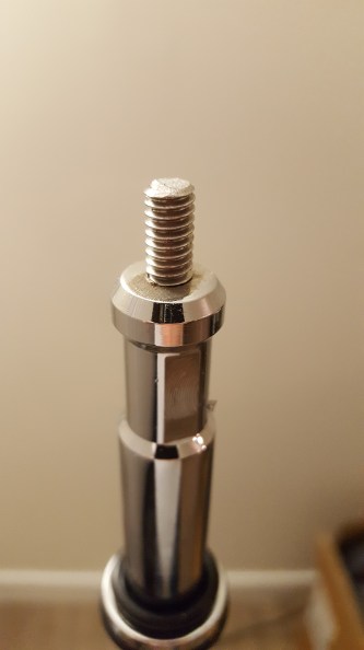 Works fine, it is however a little wobbly, and I was looking for something a little more solid and permanent. This is where I realized the tip of the tripod is actually solid, so I decided to drill a hole into it, tap it, and insert a 1/4-20 thread bolt with loctite to keep it from coming out easily.